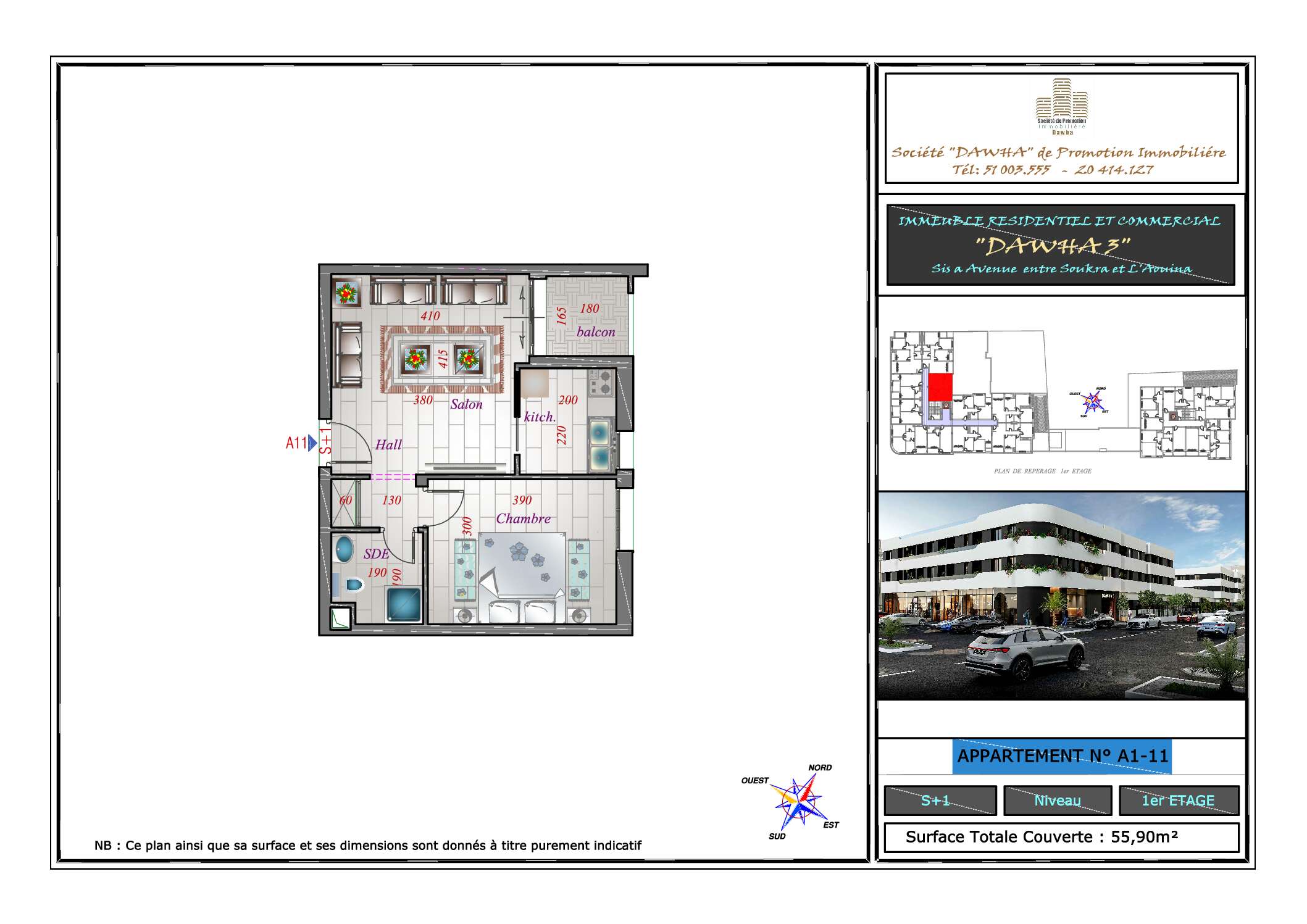 - Type : Appartement S+2 (Salon + 2 chambres)